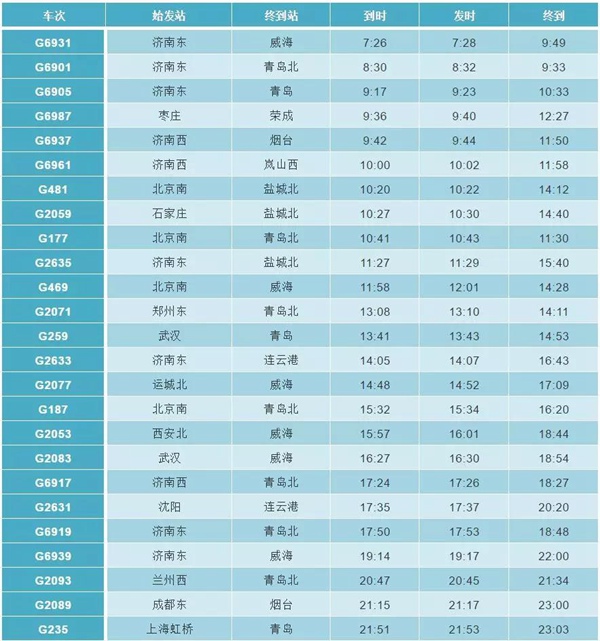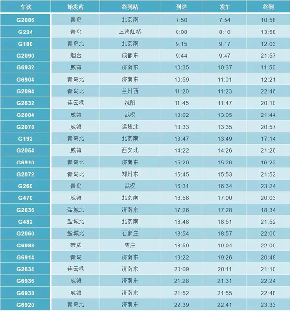 5. 自4月5日起金华-烟台 K1183次,时刻调整为潍坊站14:28开车。
