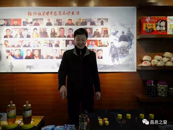 推车哥李宝栋在画展上介绍昌邑特产