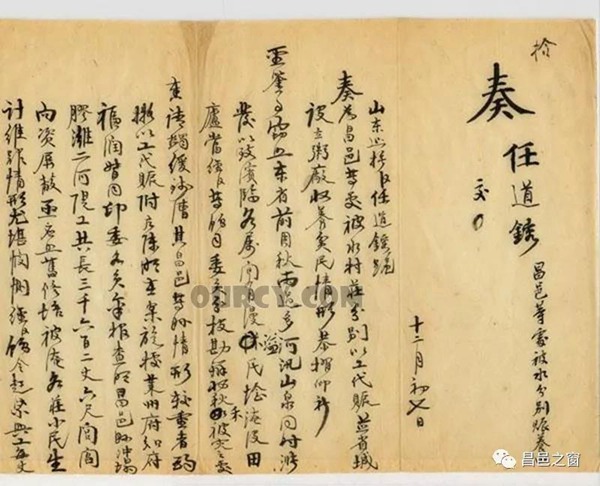 现藏于台湾故宫博物院的山東巡撫任道鎔奏聞昌邑被水分別賑養由奏折(光緒07年11月30日)