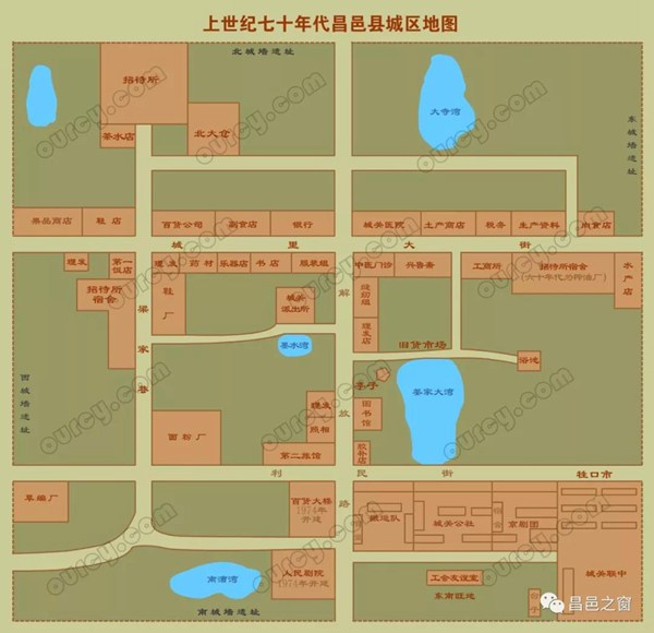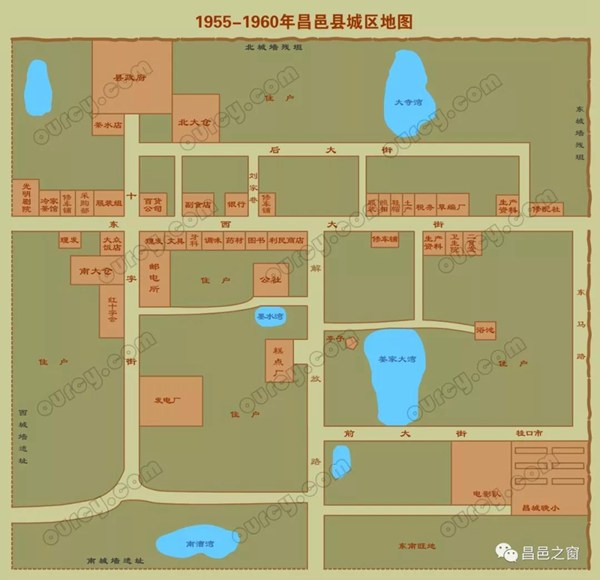 上世纪五十年代初,昌邑县城还是基本维持了民国时期老县城的框架,部分老城墙残垣依在,整个城里只有一条东西大街(今城里街)贯穿城区。那个时期,书店、饭店、综合商店、药店、医院、银行等设施基本都在城里街上。