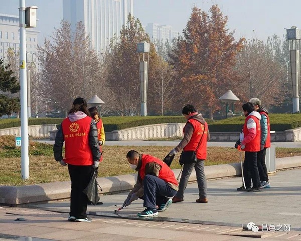 志愿者们在清理广场垃圾的同时,也在用行动感化前来休闲游玩的市民,不乱扔垃圾,不随地吐口香糖,做一名文明市民,塑一座文明城市。