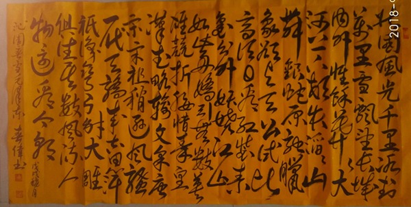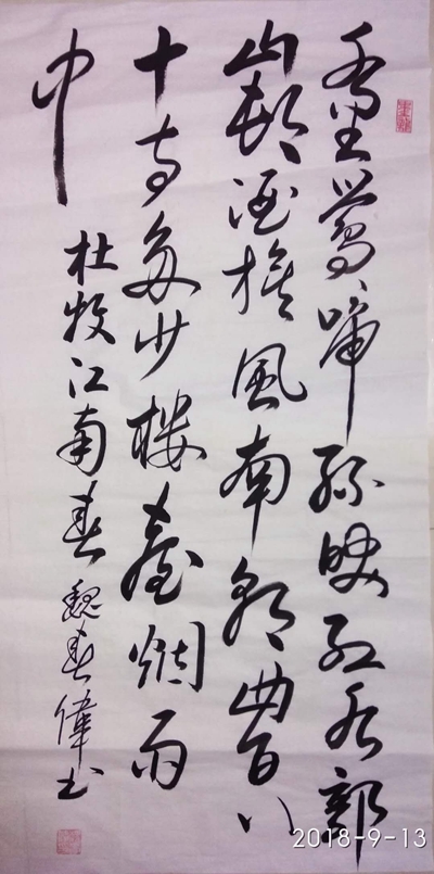 自幼受家庭良好的文化熏陶,崇尚传统文化。临习米芾、张旭、赵孟頫艺术之风格,擅行草、篆刻,痴迷毛体书法艺术。
