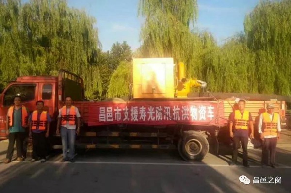 8月22日,昌邑市建设局紧急调集泵车2台、编织袋5000条、排水管1000米,筹集铁锹、油料、救生衣等物资数宗,奔赴寿光市营里镇抗洪救灾。