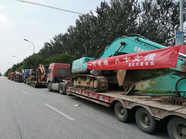 8曰29日,我市再度调集工程车辆挺进寿光灾区,参与救灾和重建工作。