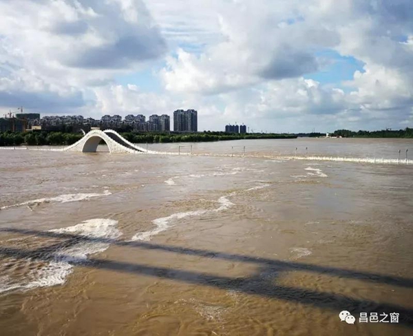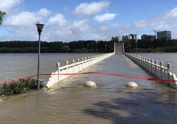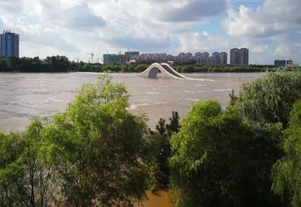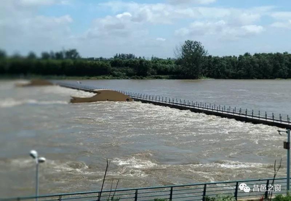 “温比亚”台风过境至山东多地遭遇强降雨。8月20日,因牟山水库开闸放水,至潍河昌邑段水位暴涨,水位漫过揽月桥,揽月桥汉白玉石栏部分被洪水冲毁。