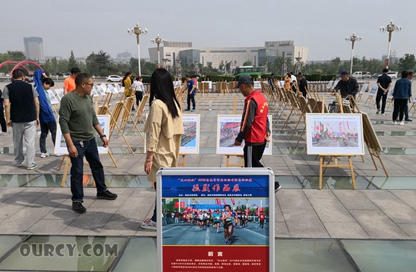 我市首届马拉松摄影展在文化广场举行