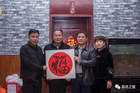今年,孙建华的“山东大饼”店重新装修了,昌邑厅也随之升级。我们送来原省美协主席王承典创作的“福”字,这里是山东移民后裔品尝乡味的地方,我们要把福挂在这里,送给福给大家,祝福乡亲们幸福美满,安康吉祥!