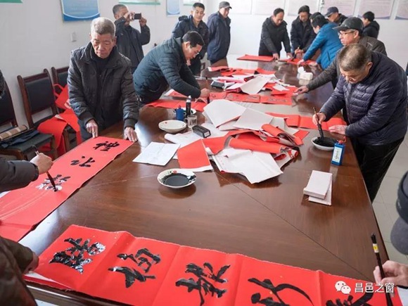 书法家们分别走进北孟镇老匙沟社区、石埠田家社区等社区文化中心,为村民送福写春联。