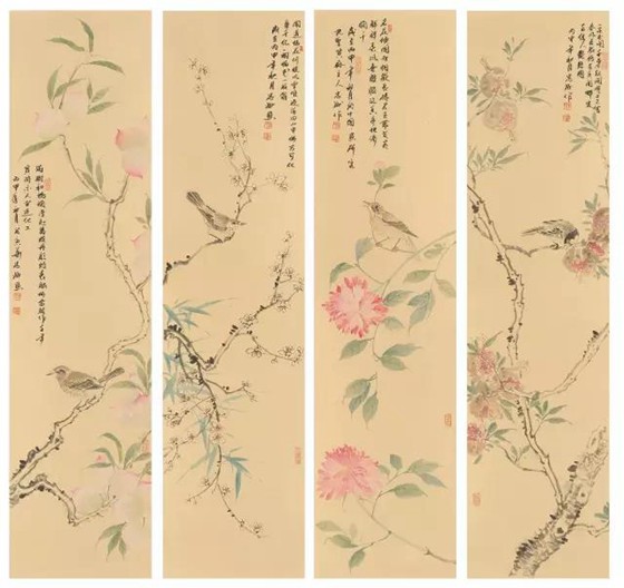 花鸟四条屏 /陈忠洲 137x34 cmX4