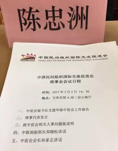 陈忠洲院长应邀参加中联部中促会理事会,会议于2017年3月2日下午在万寿宾馆二楼山海厅召开。