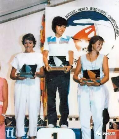 1985年,张小冬(中)站在澳洲世界帆板锦标赛的冠军领奖台上。