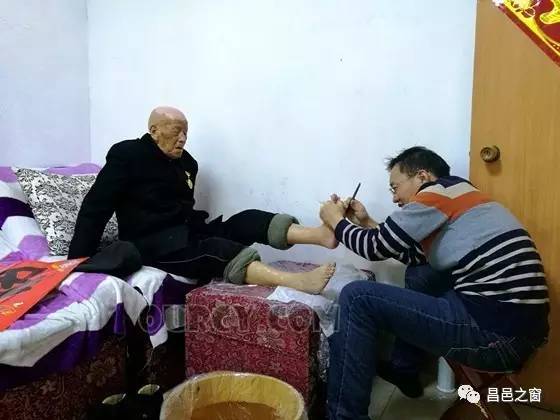 他们来到了一家叫“丁氏修脚堂”的修脚店,店主却被老人的抗战经历所感动,执意要免费给老人修脚。