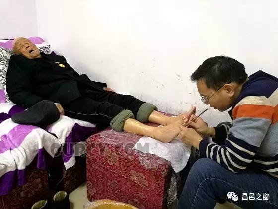 陈红昌今年39岁,河南省商丘市人,在昌邑从事修脚行业多年。在给客人服务的时候,陈红昌发现老年人的脚疾普遍比较严重,因为肢端循环代谢减慢和年老体衰,一些老人没有及时剪掉厚厚的指甲,导致脚趾甲长到肉里,还有一些老人患有骨刺、脚垫增厚等病症,也没有及时去大医院看病。于是,陈红昌萌发了一个念头——去敬老院免费为老人们修脚。