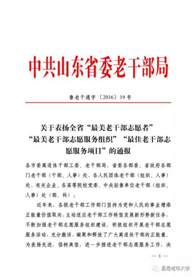 近日,经山东省委老干部局评选,我市老干部王文浩同志被授予“山东省最美老干部志愿者”、峻青文学馆“讲好中国故事”项目荣获“山东省最佳老干部志愿服务项目”。老干部们退休不退志,积极发挥余热,贡献智慧和力量,为谱写“中国梦”增添正能量。