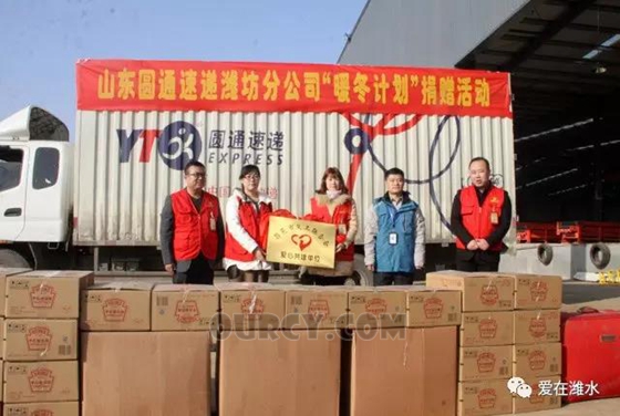 经圆通潍坊转运部部长黄刚安排,捐赠活动安排在圆通速递潍坊分公司分拣中心进行,本次活动共向昌邑市义工联合会捐赠了3万余元的爱心物资。在捐赠仪式上,潍坊圆通速递部门负责人向昌邑义工介绍了圆通公司近年来开展的一些公益慈善活动。圆通公司在董事长喻渭蛟的带领下,不断致力于公益慈善事业。其中,2008年四川“5·12”大地震捐款56万余元;2010年青海玉树地震捐款25万余元;2011年成立“圆通”专项基金,承诺每邮寄1份快件拿出两分钱做公益,用于开展安老、帮困、扶幼、助学等公益活动。同时表示,圆通速递将始终秉承“服务社会 强企为国 ”的服务理念,在做大、做强企业的同时,用实际行动去感恩回报社会,为更多的弱势群体送上圆通大家庭的关怀与温暖。