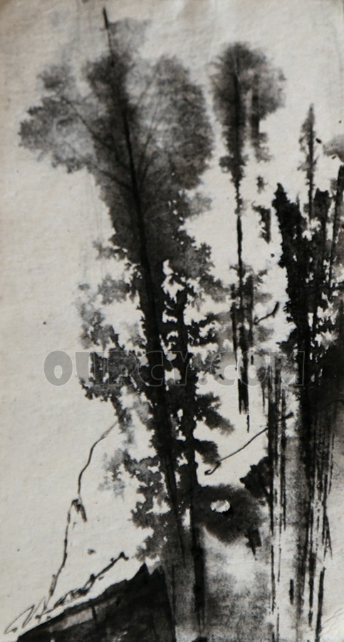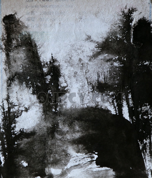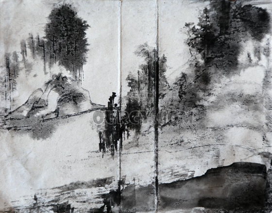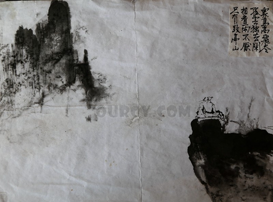 王洪章大爷是围子镇天保村村民,一位普通的农村老大爷,他不懂线条,不懂润色,心中却藏着满满的风景,于是他随手捡一根树枝,折一块耙齿竹条,就在废纸壳或旧瓷砖上画起来。王大爷越画越上瘾,越画越像心中的风景,竟然用土的不能再土的画法创作出了一系列山水作品。