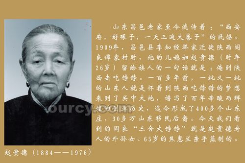 西安阎良区三合村是散落在秦川平原上的几十个昌邑村之一。该村人口1600余人,多为昌邑及与昌邑交界处的几处高密村庄移民后裔,村中昌邑移民多来自昌邑高阳街、大庄丶北孟街、小南孟等村。这些当年一路徒步来陕糊口创业的昌邑先辈,不仅传承保留了昌邑方言,还沿袭了老家的居住和饮食文化。
