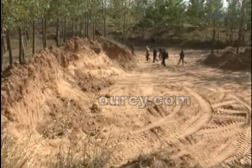 这个防风堤是天然形成的沙岭,沙岭北边就是田家湾,沙岭之上是树木,全部是防风林。沙岭南侧是果园,村子在沙岭西侧,沙岭对村庄形成一道天然屏障。沙岭已经被挖成了深三四米左右,直径三四十米的沙坑。