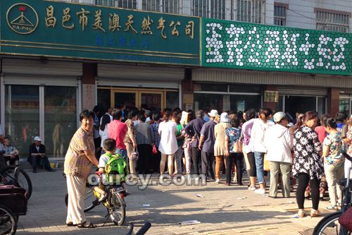 上图:天然气涨价前居民排队充值