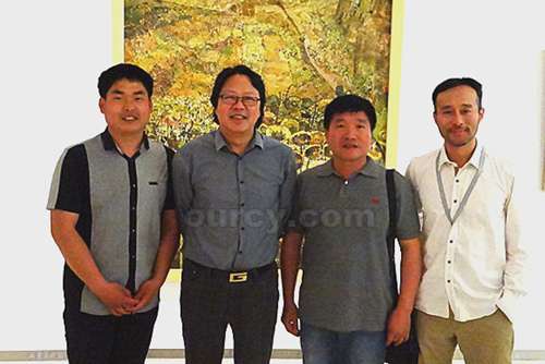 李强与山东美术家协会副主席王力克先生(左二)和著名油画家们在作品前合影留念