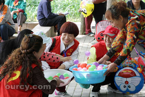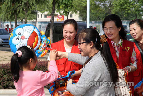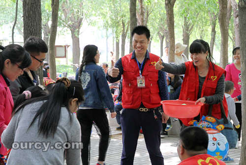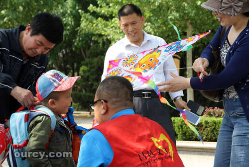 在活动当天,潍河湿地公园充满了欢声笑语。义工们把气球、玩具等小礼品送到孩子手中,极大地拉近了与孩子们的距离。在康复中心工作人员的指导下,义工们协助家长与孩子们玩起了温馨热闹的亲子游戏。义工们有的陪孩子做游戏,有的陪孩子们在广场上放风筝,有的与家长们一起交流孩子的成长现状,并祝孩子们早日康复。