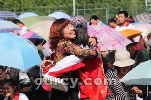 接下来,在舒缓的音乐声中,进入家长赠送礼物和信件环节,这是本次成人礼的核心环节。当拿到家长为自己精心准备的礼物和信件时,会场一下子变得安静了,同学们都在默默读着家长写给自己的成人寄语,它承载了家长对我们深深的爱。很多同学都情不自尽大声的喊出“我爱你们,爸爸妈妈”,并与父母紧紧拥抱,不少学子与家长洒泪现场。同学的感恩、家长的爱护、浓浓的亲情,让整个会场充满了爱与温馨,将典礼推向了高潮。