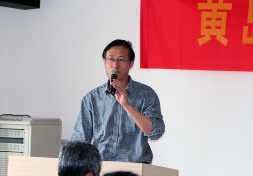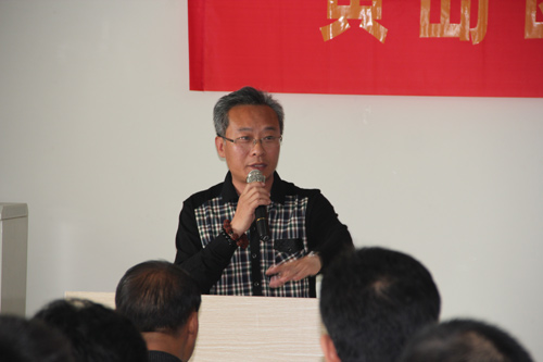 会员代表张栋做了《潍水情深》的主题演讲,赢得了老乡们的共鸣。