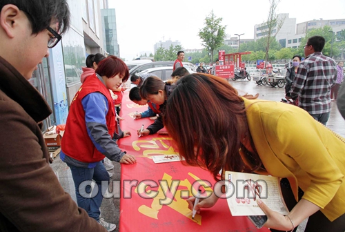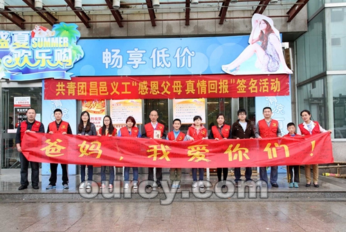 5月11日,母亲节。团市委和昌邑义工在全福元组织发起了“感恩父母 真情回报”签名活动。