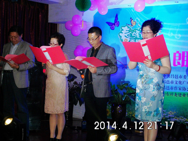 期间,我市还举办了一场别开生面的“面朝潍河 春暖花开”诗歌朗诵会。冯秋子主编为诗歌朗诵会创作了《拥有草原的人》,廖建斌主任朗诵了习近平主席的近作《念奴娇·追思焦裕禄》,李浩老师现场挥毫泼墨,书法俊雅。张军主席、陈雪梅主席等朗诵了自己创作的诗歌。晚会现场,诗情荡漾,文气升腾,掌声热烈!作协部分会员、文友一百多人参加了诗歌朗诵会。