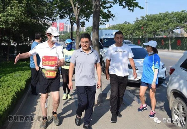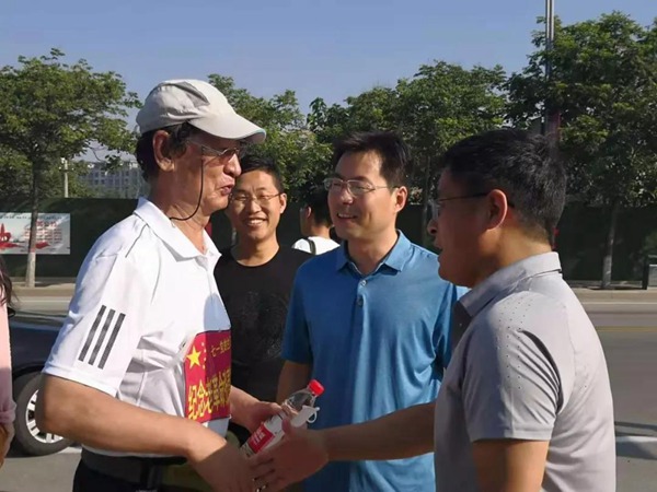 上午七点半,不忘初心、牢记使命——山西七旬老人赴昌邑徒步行纪念老厂长张青树活动在昌邑市潍水风情湿地公园海马广场开始。封建部在中共昌邑市委宣传部工作人员和昌邑市互联网文化协会志愿者的陪同下,徒步从海马广场出发,沿着交通中街、滨河西路、潍河大桥、堤顶路、卜庄镇路,向着张青树同志的原籍夏店村进发。