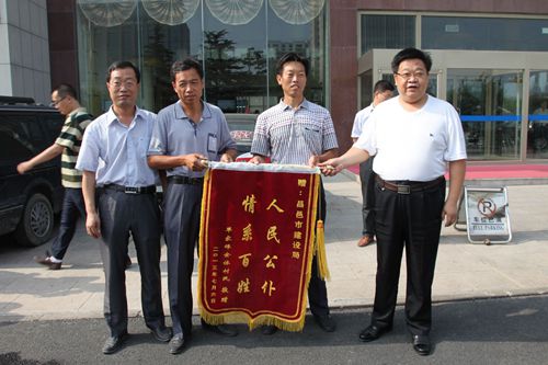 7月8日上午,都昌街道单家埠村数十位村民自发组织,敲锣打鼓将锦旗和感谢信送到昌邑市建设局。