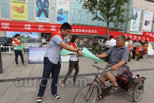 第23个全国节能宣传周到来之际,我市各部门在全福元超市广场联合举行“践行节能低碳 建设美丽昌邑”主题宣传活动。宣传员通过分发节水、节电、低碳生态住宅及低碳健身出行等方面的宣传资料和现场解答,与市民互动沟通,倡导市民践行低碳生活、共创美好家园。
