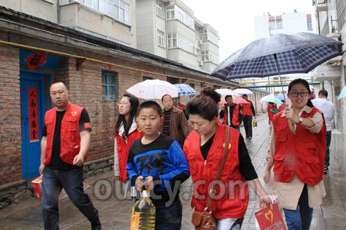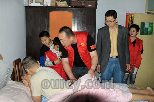 虽然下着雨,但阻挡不了义工们热情的脚步。义工们带着米、油、牛奶、水果等慰问品来到陈进涛的家中。义工们查看了他的伤势,临走时还给他留下了慰问金,并叮嘱他要养好身体。