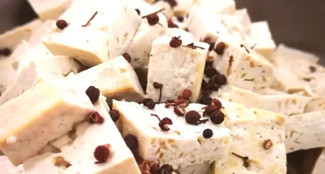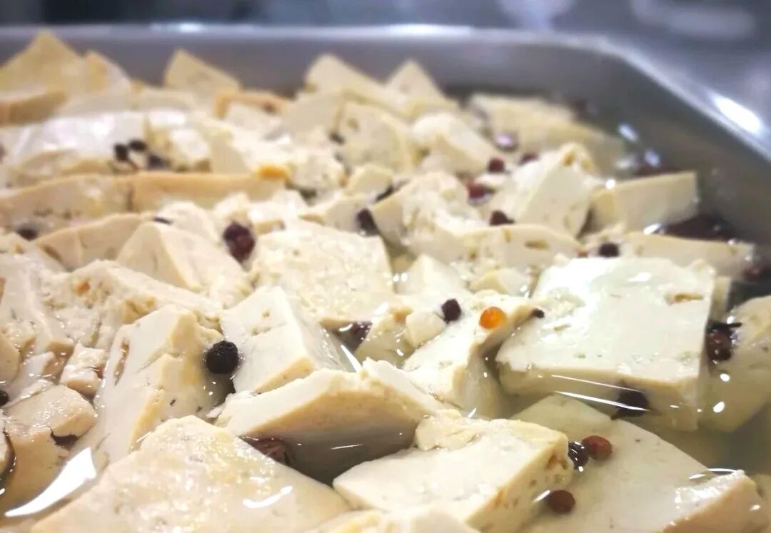 她从盐罐里舀两勺粗盐,撒进小碗里,再抓一小撮干花椒,用滚烫的开水一冲,“滋啦” 一声,花椒的麻香混着盐的咸鲜立刻漫开来。等蒸好的豆腐凉到不烫手,就一块块放进卤汁里,浸上半个钟头,让味道慢慢渗进豆腐的每一个缝隙。