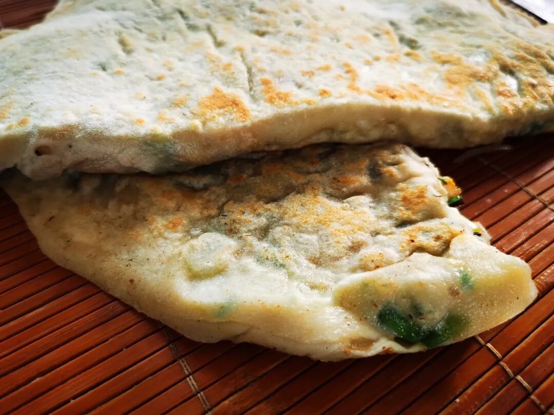 随后往烧热的鏊子上刷一层薄油,把包好馅的面饼轻轻放上去,小火慢烙,待一面烙得金黄焦脆,再翻个面,全程不用急,慢慢等着面饼受热鼓起,等着馅料的鲜汁渗透进面皮,等着两面都烙出焦褐的花纹,香气便彻底弥漫整个屋子。