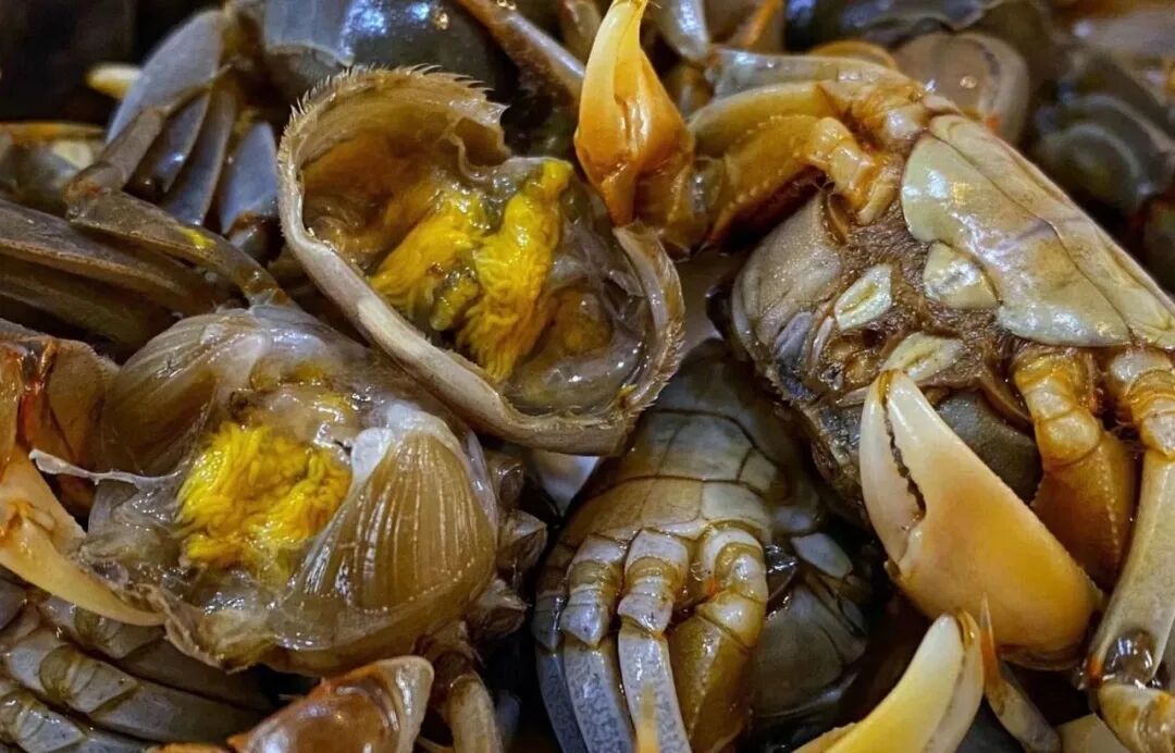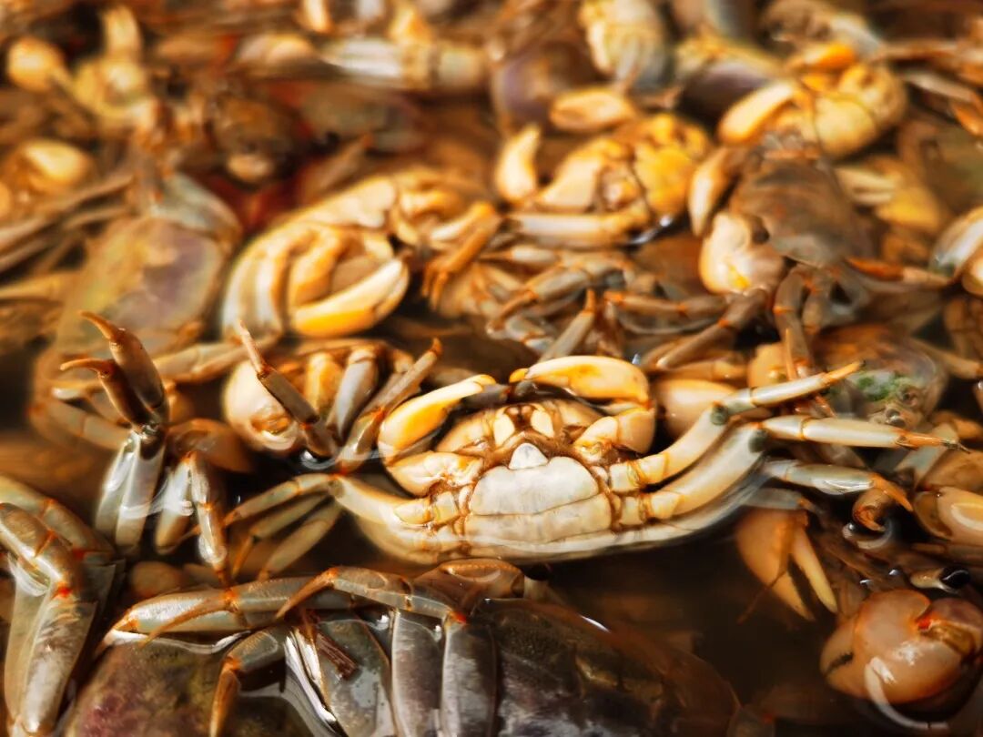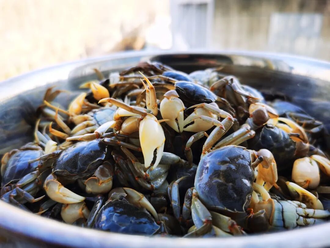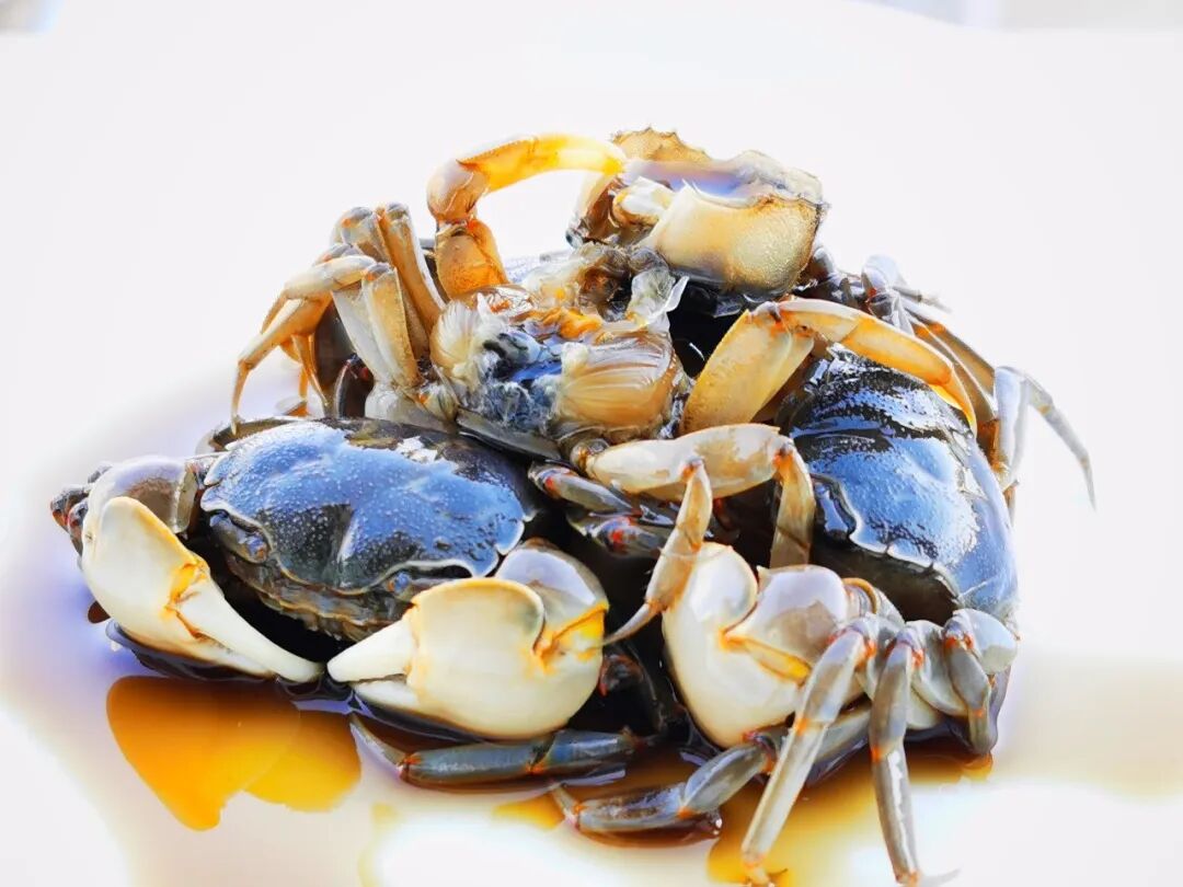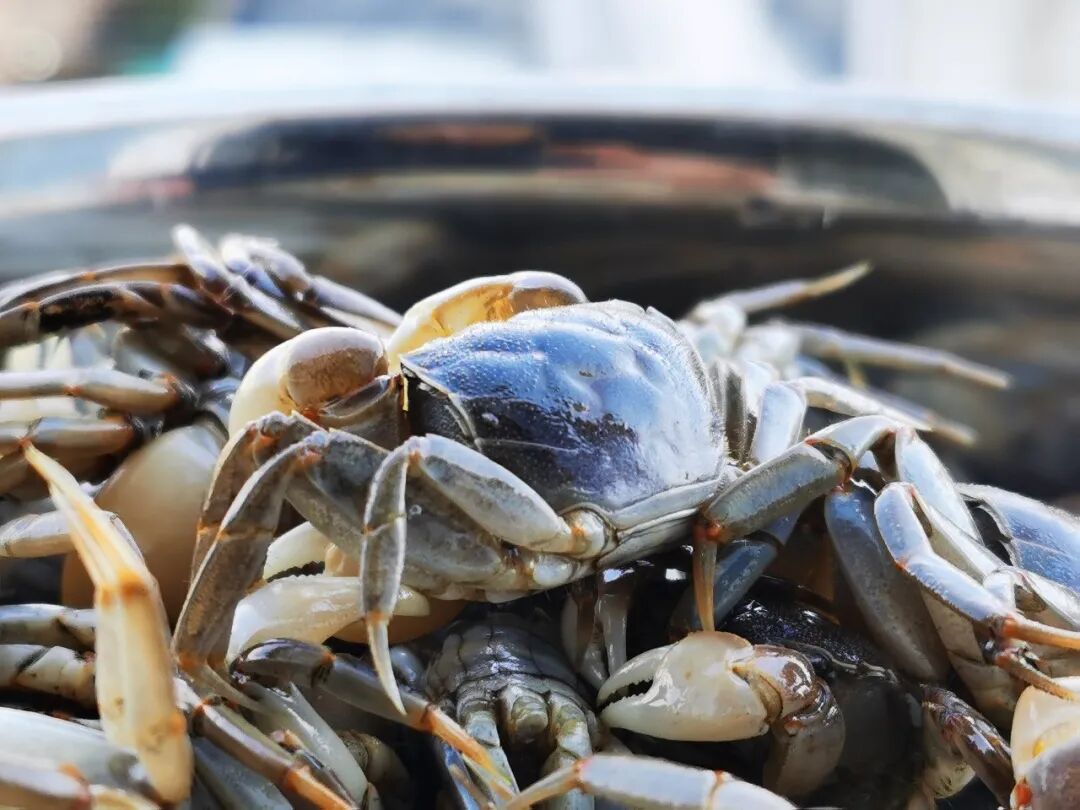 背壳覆着一层青褐色的肌理,温润而有光泽,宛如古人锻造的古朴铠甲,历经潮起潮落的洗礼,愈发显得厚重沉静。蟹足光滑无毛,这是它区别于其他蟹类的鲜明标识,不似梭子蟹那般覆着绒毛,也不似大闸蟹那般粗壮带刺,却透着几分清灵。