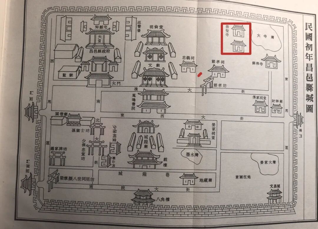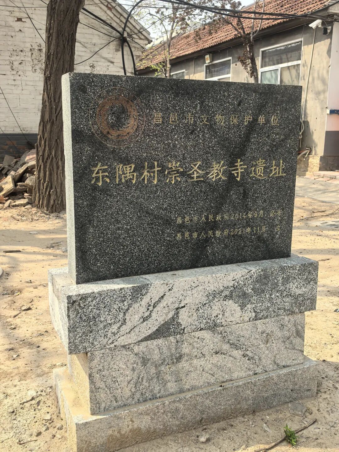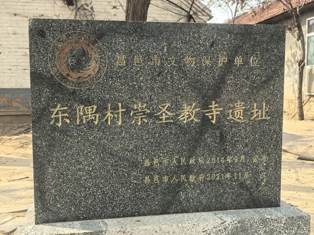 去年有一天,我沿着昌邑城区解放路从北向南步行时,走到路西还是一排排平房的地段,忽然发现路边有一块石碑,上写“东隅村崇圣教寺遗址。”我当时充满好奇,多年前这里有怎样的一座寺庙呢?直到最近我写昌邑古八景查资料时发现了史书中记载着崇圣教寺,这让我仿佛看到了这座寺庙曾经的模样。