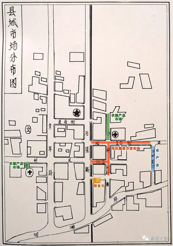 改革开放初期,昌邑首先恢复了农副产品的集市贸易和服装布匹的交易市场。昌邑大集农历逢二排七,每到大集,解放路和利民街上人声鼎沸。解放路城里街以北路段是锅盖垫子笤帚扫把等日用品的交易市场,当然,还有柿饼子地瓜糖等农家自制零食的售卖摊位;解放路城里街以南路段和利民街路段多是床单布头服装鞋帽的贸易市场;当时的城里街是“大商店”集中的区域,书店、鞋店、药店、综合商店都集中在这条街上;解放路上有照相馆、理发店、图书馆等设施;鱼市则在当时的城里街东头、现在北海公园南门往南的文昌路北段一带。