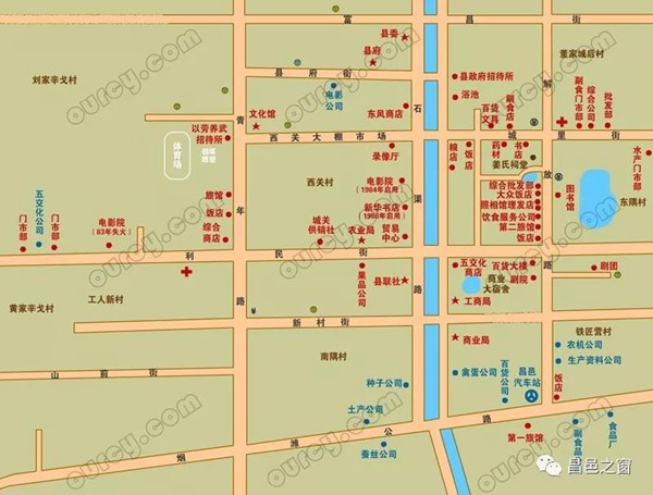 至八十年代中期,电影院迁址石渠路,贸易中心开业,西关街大棚建成,新华书店迁址石渠路,昌邑的商业中心逐渐移出城里街,转到石渠路和利民街上。