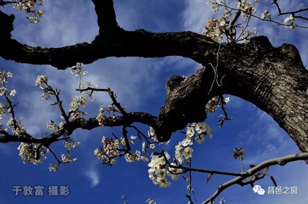 万亩梨园,千年古树,虬枝盘绕,梨花满目。