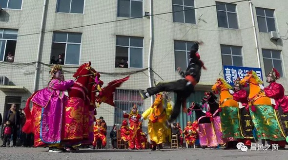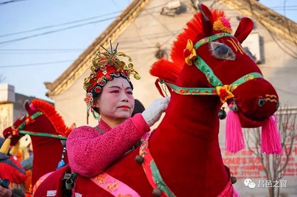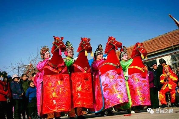 跑竹马是山东昌邑西小章村从元代沿袭至今的一种独特的传统民间歌舞。每年的正月初八,该村马氏家族都会以这种特殊的歌舞从西小章村出发,一路演出,去宋庄同族村庄拜影祭祖。