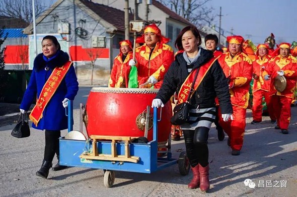 整个队伍,最少60余人,多时100多人,阵容强大, 步伐整齐,彩旗飘扬,十分壮观。
