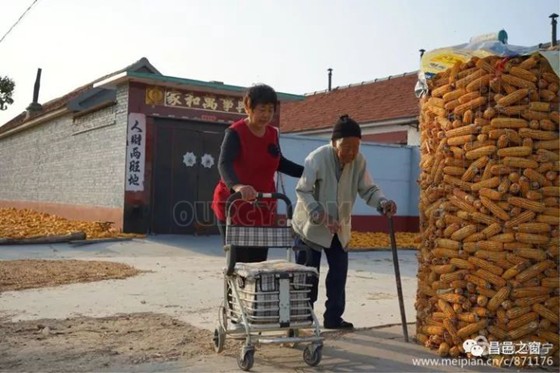 孝顺的媳妇经常搀扶着姥姥去晒晒太阳