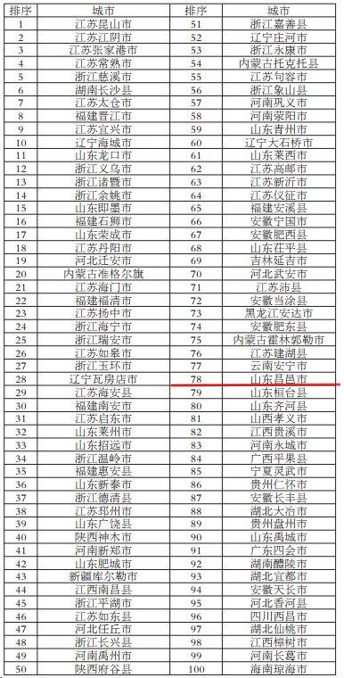 其中昌邑同时入选全国综合实力百强县市和全国中小城市投资潜力百强县市。