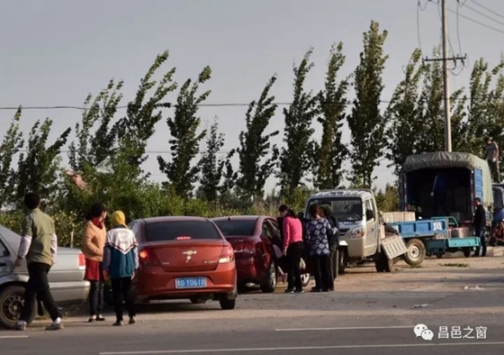大陆梨枣熟了,慕名前来采摘的市民车辆排满了道路两旁。