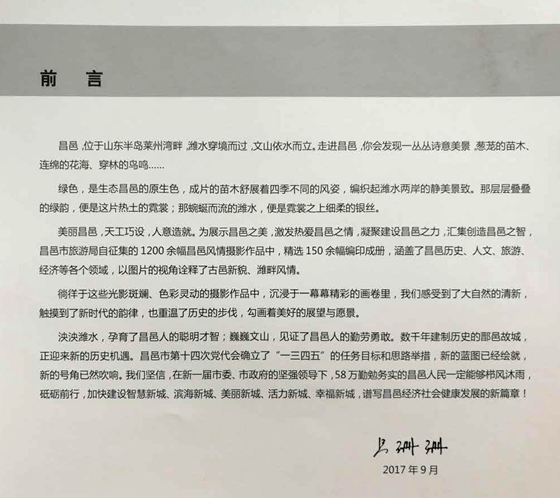 近日,大型风光画册《花雨绿韵 拥抱昌邑》编印完成。该画册由昌邑市旅游局策划编印,内容涵盖了昌邑城乡新貌、风光旅游、民俗文化等领域,充分展示了昌邑人文和旅游资源。
