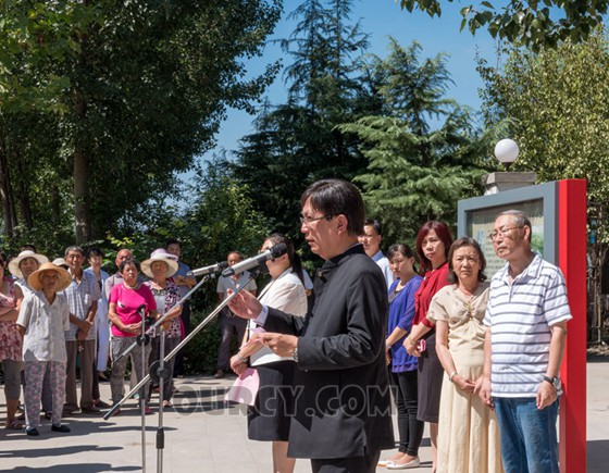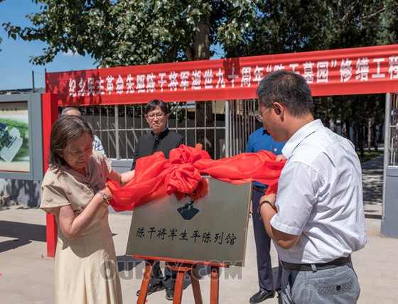 陈干将军外孙女佟立容女士与潍坊市文物局局长刘允泉为陈干生平陈列馆揭牌。