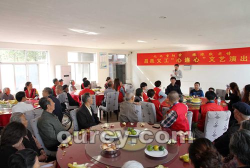 在敬老院,昌邑义工联合会和昌邑市音乐家协会为老人们送上了一台精彩的“心连心”文艺演出,多彩的节目让老人们挂满了幸福的笑容。义工们为老人们打扫卫生、给他们理发、陪他们聊天,并和敬老院的工作人员一起为老人包饺子。吃着热腾腾的饺子,老人们的脸上露出了幸福的表情。随后,义工们又来到宋东村,看望了孤寡老人刘连升,并为他送上了热乎乎的饺子。