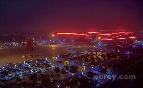 10月5日晚,昌邑市文化中心飘带拱顶灯带安装完毕亮灯。