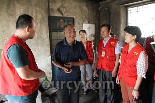 义工们带着油、面、蛋、水果等慰问品首先来到草庵村张先庭老人的家里。今年78岁的张先庭老人原本有个幸福的家庭,多年前老伴因车祸去世,他也落下了残疾,好不容易为患精神疾病的儿子组建了家庭,儿媳又离家出走。孙女读小学,但经常被父亲吓得不敢回家。义工们安抚着老人,叮嘱他保重身体,更祝福他的孙女学会坚强,取得更好成绩。